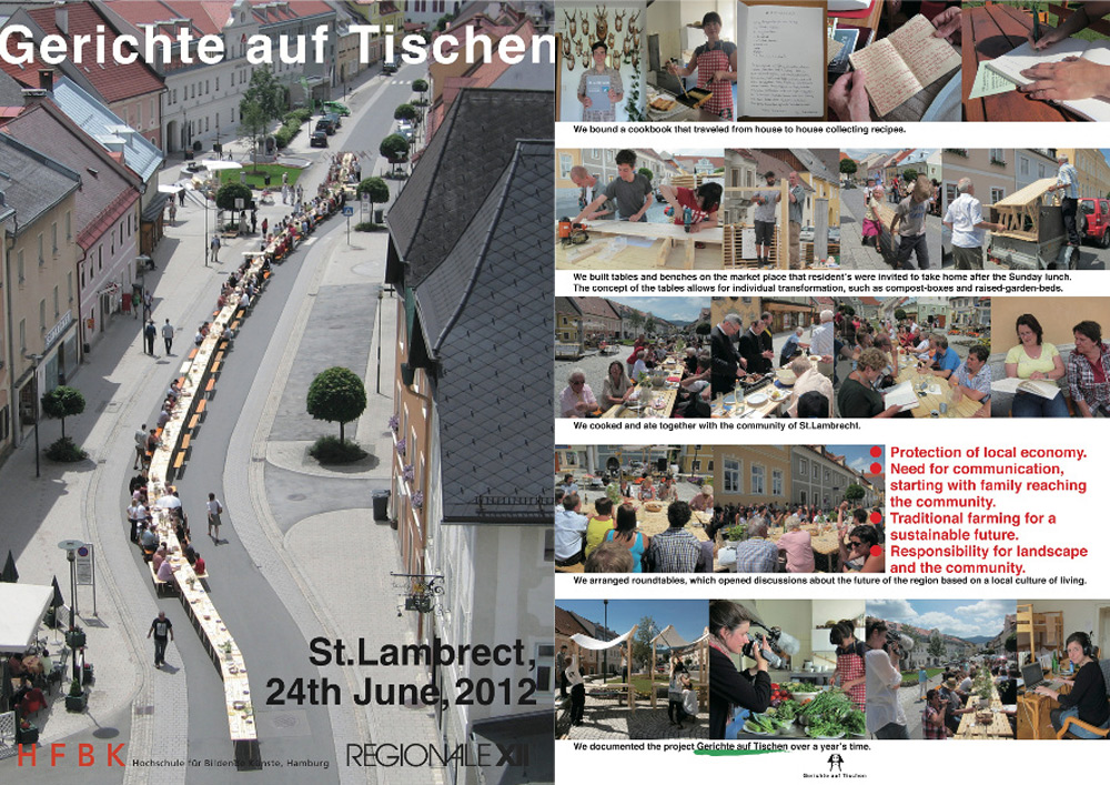 Gerichte auf Tischen is included in the Regionale12 festival under the theme “Living Together/Working Together”