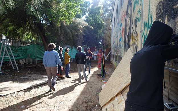 The students of Design for the Living World and their guests attended the gathering The Neighbourhood as Global Arena at the invitation of the Israeli Center for Digital Art in Holon, where they participated in a workshop with students from the Civic Architecture Unit and Public Lab of the Department of Architecture at the Bezalel Academy for Art and Design in Jerusalem. The event marked the culmination of the two-year project Glocal Neighbours, a collaboration between the Jessy Cohen neighbourhood in Holon and the Nordbahnhof neighbourhood in Stuttgart. In the four-day gathering, the students joined local residents, artists, architects, social workers, activists and community organizers to examine the questions: Which global, economic and political processes make the neighbourhood? And what kind of institutions should we have in the neighbourhood to respond to these processes?