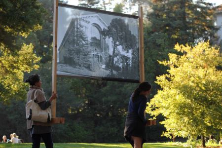 AE: I was thinking of my classroom at the University of California and how much the walls are really part of the education there. You have your studio and you stay in it. I was wondering how it was for you this semester, Ryo, to be going outside the classroom almost every day, taking our mobile classroom to different parts of the University. We went outside to look for answers to certain questions probably once a week, with big photo scrims and a blackboard and charrette cards sometimes, or with food, or something else, to create a space where we could talk to people. So I wonder, what that was like for you?